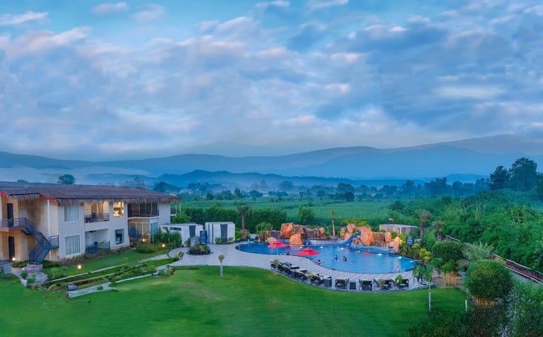 Anantum Gateway Resort & Spa in Jim Corbett offers a luxurious retreat amidst nature's beauty. The resort features a variety of accommodations, including deluxe rooms, cottages with plunge pools, premium cottages, executive rooms, sky view suites, and family suites, all designed for maximum comfort and privacy. Guests can enjoy world-class amenities such as a spa, fitness center, swimming pool, and multiple dining options serving local and international cuisine. The resort also provides extensive facilities for events and celebrations, including banquet halls and conference rooms. Its proximity to Jim Corbett National Park allows easy access to wildlife safaris and outdoor activities, making it an ideal destination for relaxation and adventure.