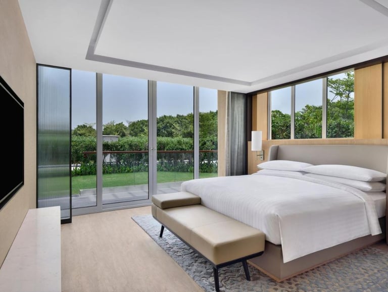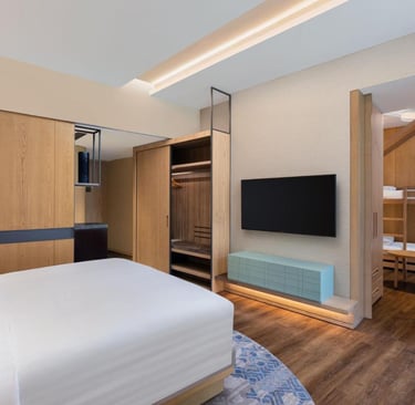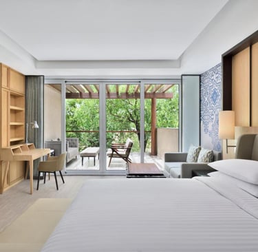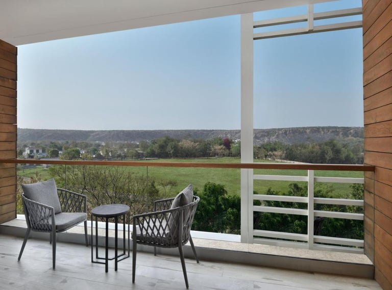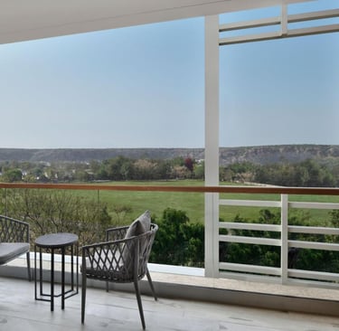 The resort features spacious and well-appointed rooms and suites, each thoughtfully designed with a blend of contemporary décor and rustic charm. Guests can enjoy the lush landscapes from private balconies and large windows, providing breathtaking views of the Aravallis. The interiors combine comfort with style, featuring premium amenities like high-speed Wi-Fi, LED TVs, plush bedding, and a minibar.