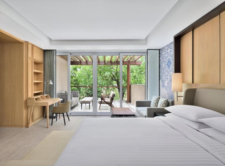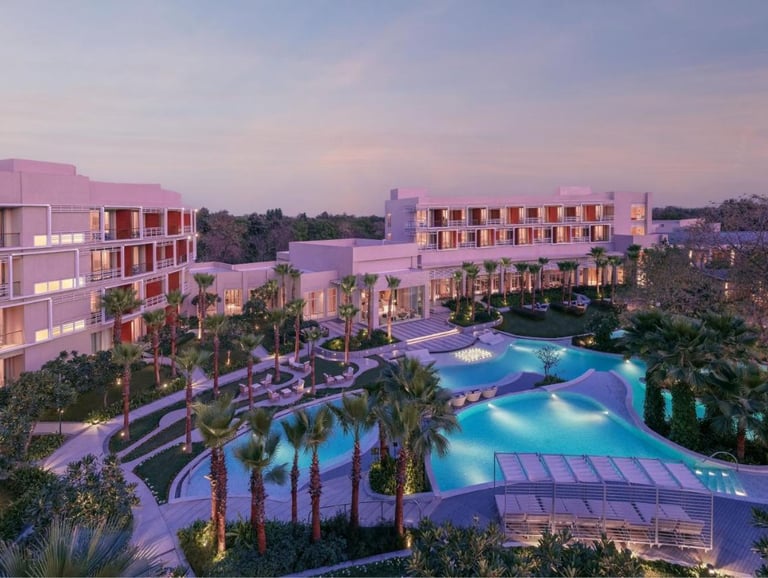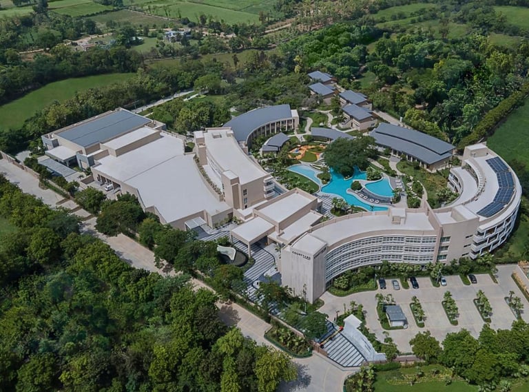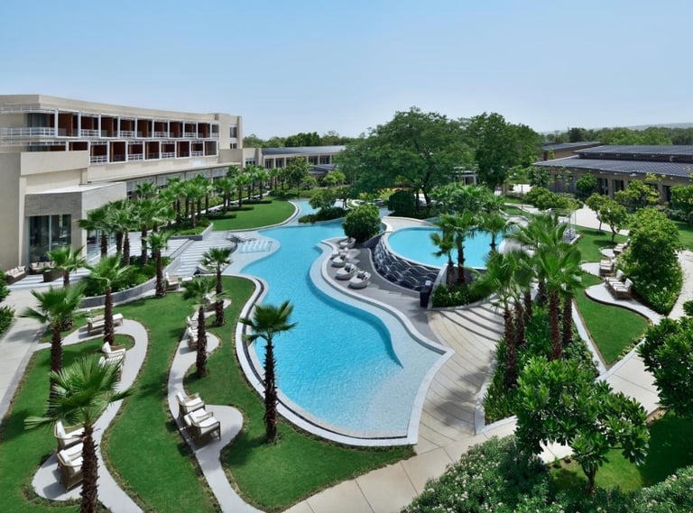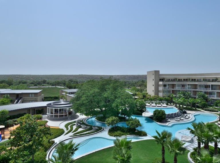 Courtyard Aravali Resort, located in the picturesque Mohbtabad near Faridabad, offers a serene escape with a backdrop of the stunning Aravalli Hills. This luxurious resort is designed to blend modern elegance with the natural beauty of its surroundings, making it ideal for weekend getaways, family vacations, weddings, and corporate retreats.