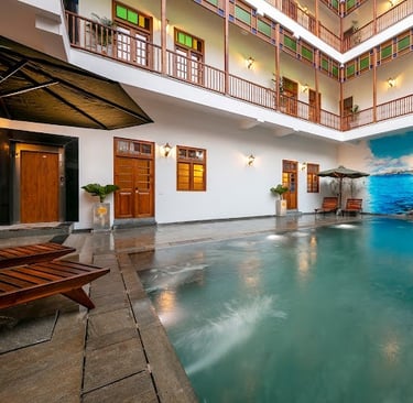 Grand Hotel D’Europe, Pondicherry, is a timeless blend of heritage and luxury. Nestled in the heart of the French Quarter, this elegant property boasts colonial architecture, chic interiors, and unparalleled hospitality. With well-appointed rooms offering modern comforts, a gourmet restaurant serving exquisite cuisine, and a serene ambiance, it’s perfect for a relaxing getaway. Its prime location provides easy access to the Promenade Beach, iconic landmarks, and vibrant local culture, making it an ideal choice for travelers seeking charm and sophistication in Pondicherry.
