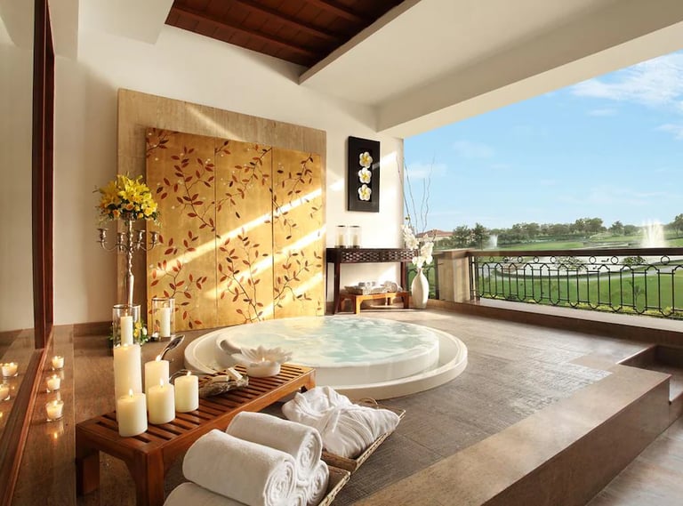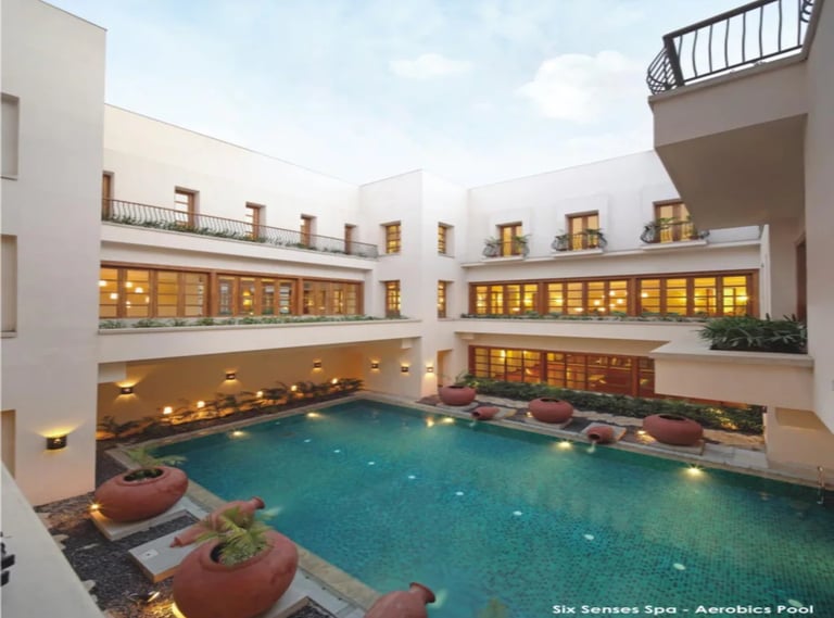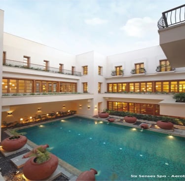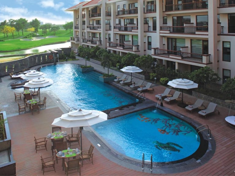 Jaypee Greens Golf & Spa Resort in Greater Noida is a luxurious retreat that combines world-class amenities with an atmosphere of tranquility, offering guests a perfect escape from city life. This resort is known for its sprawling, lush green landscapes, anchored by a championship 18-hole golf course designed by the legendary Greg Norman. The golf course provides a stunning view from the resort, making it a paradise for golf enthusiasts and nature lovers alike.