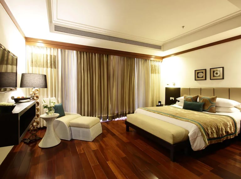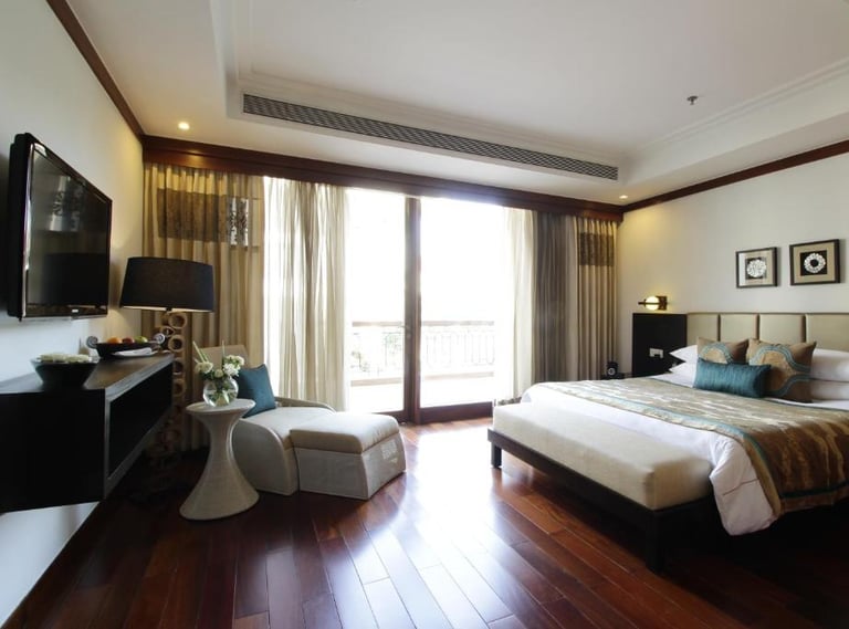 Additional features include a well-equipped fitness center, tennis courts, swimming pools, and dedicated kids’ areas, making it a complete leisure destination. Its strategic location near Greater Noida's business and entertainment hubs also makes it a convenient choice for business travelers seeking a blend of work and relaxation.