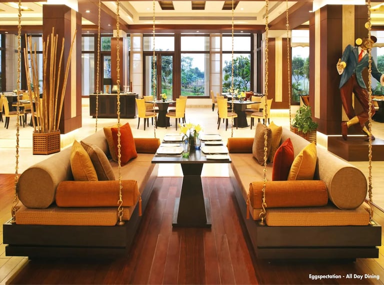 Dining at Jaypee Greens Golf & Spa Resort is a delightful experience, with multiple on-site restaurants and bars serving a variety of cuisines, from authentic Indian to international delicacies. The resort also offers private dining options and al fresco settings, perfect for romantic dinners or family gatherings.