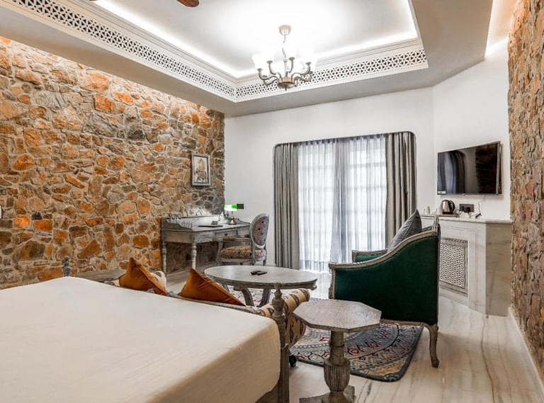 Juna Mahal Jungle Resort in Ranthambore is a charming and tranquil retreat nestled in the heart of nature. Located near the famous Ranthambore National Park, it offers a blend of luxury and rustic charm, providing guests with an authentic jungle experience. The resort features well-appointed rooms, lush surroundings, and modern amenities, making it ideal for wildlife enthusiasts and those seeking relaxation. It also provides easy access to safaris, where you can explore the rich flora and fauna of the park. The resort combines comfort with adventure, offering a unique escape into nature.