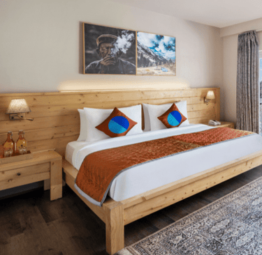 Accommodation: The resort features elegantly designed rooms and cottages, each equipped with modern amenities. The interiors are a blend of traditional charm and contemporary comforts, providing a cozy and inviting atmosphere. Many rooms have large windows that open to stunning mountain views.