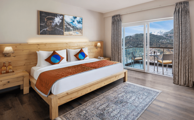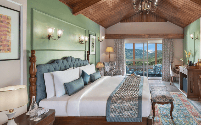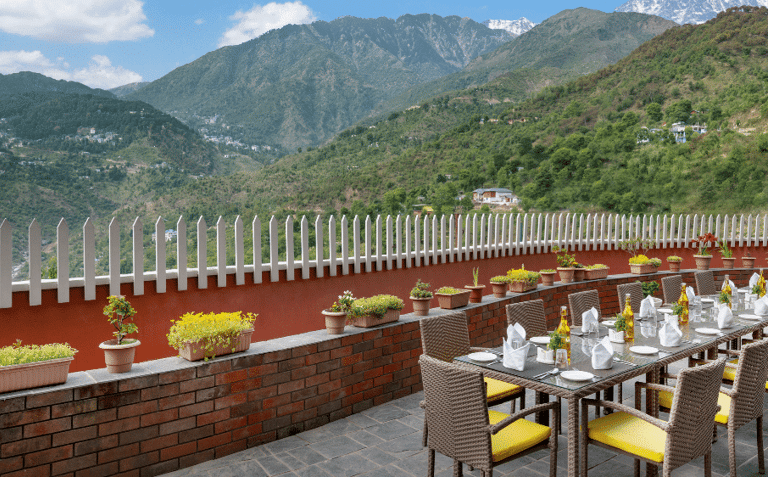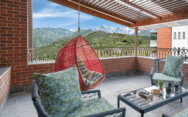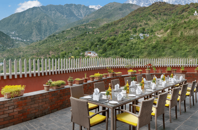 Location & Views: Perched in the scenic area of Dharamshala, the resort offers panoramic views of the Dhauladhar Range, lush green forests, and serene valleys. The lush surroundings make it an ideal location for birdwatching and nature walks.