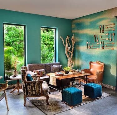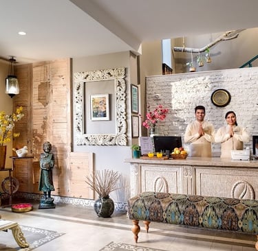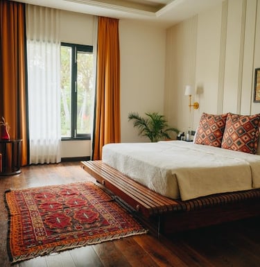 Karma Chalets is a serene and charming boutique resort in Gurugram, located within the lush Karma Lakelands community. Set amidst expansive green landscapes, this eco-conscious resort offers a peaceful retreat from the hustle and bustle of city life. With a blend of modern luxury and rustic charm, Karma Chalets features beautifully designed rooms, each with its own unique decor, warm wooden furnishings, and private balconies that overlook scenic views of nature, gardens, and even a golf course.