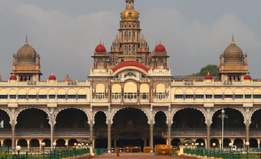 Mysuru: Famous for its royal heritage, Mysuru offers attractions like Mysore Palace, Chamundi Hill, St. Philomena's Church, and the Mysore Zoo. The city is also known for its Dasara festival.