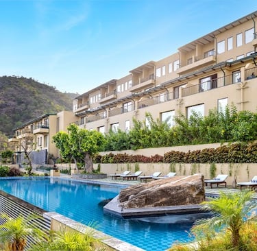 Nestled amidst the Aravalli Hills, Radisson Blu Resort, Kumbhalgarh offers a perfect blend of luxury and heritage. With its elegant architecture inspired by Rajasthan's royal palaces, the resort provides world-class amenities, including spacious rooms, a serene spa, a stunning infinity pool, and exquisite dining options. Located near the iconic Kumbhalgarh Fort, this resort is an ideal retreat for travelers seeking relaxation, cultural exploration, and breathtaking views. Whether for a family vacation, romantic getaway, or special event, Radisson Blu Resort promises an unforgettable experience of luxury and charm.