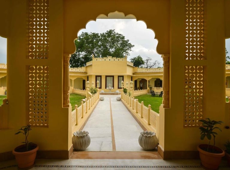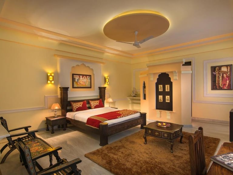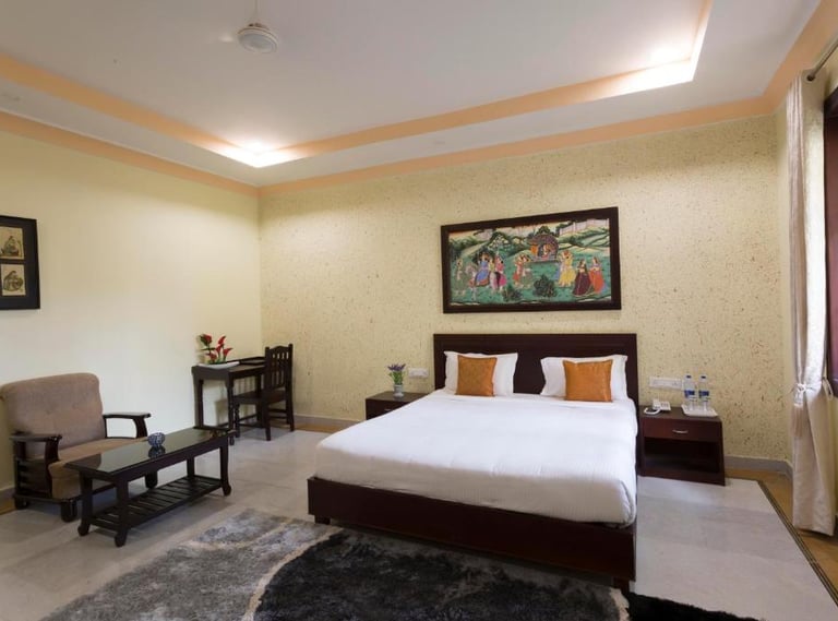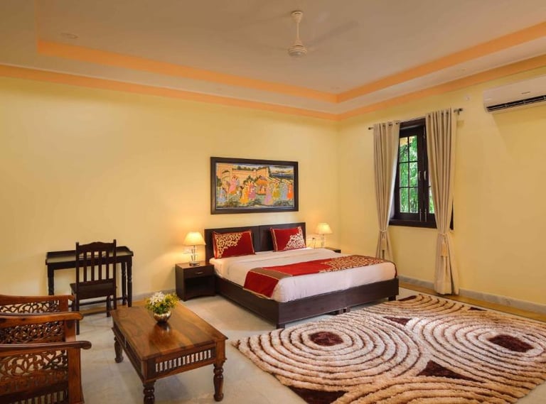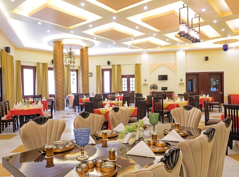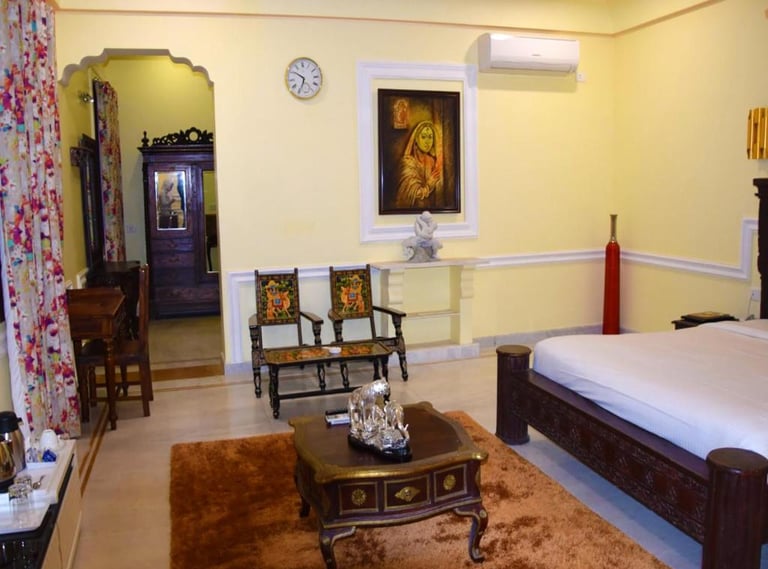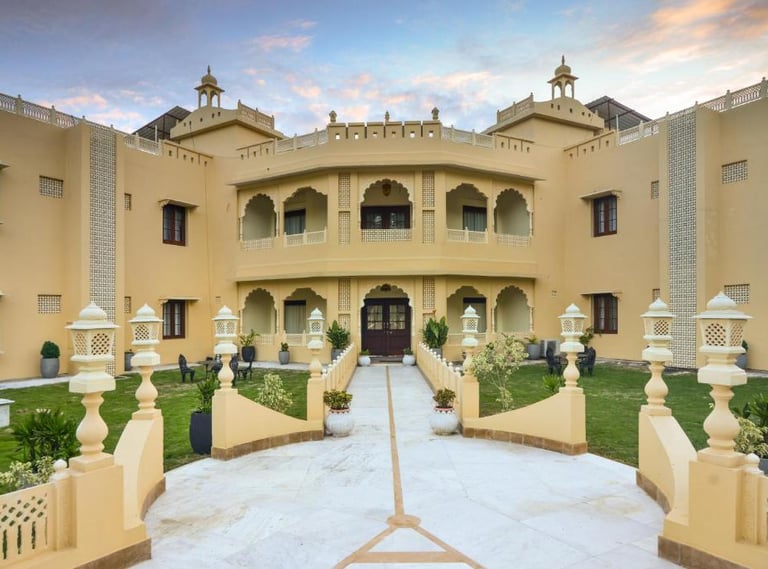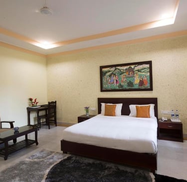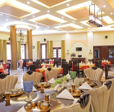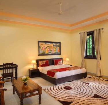Syna Heritage Hotel, Khajuraho, is a luxurious blend of traditional charm and modern comfort, located near the UNESCO World Heritage Khajuraho Temples. With its regal architecture, beautifully landscaped gardens, and elegant interiors, it offers a serene retreat. The hotel features well-appointed rooms, a swimming pool, a multi-cuisine restaurant, and warm hospitality, ensuring a memorable stay amidst the cultural splendor of Khajuraho.