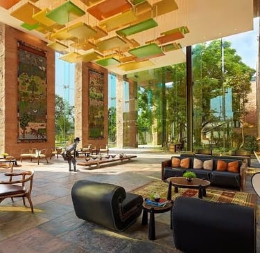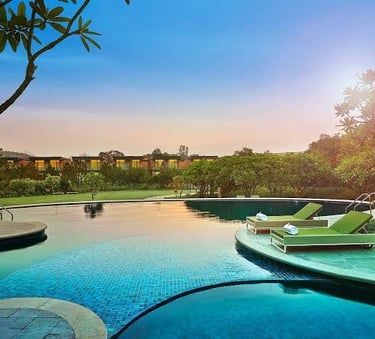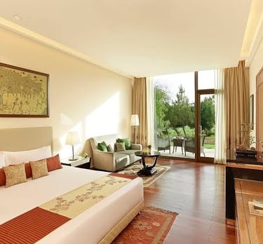The Gateway Resort Damdama Lake in Gurugram is a luxurious nature retreat nestled amidst the scenic Aravalli Hills and spread over 20 acres near the serene Damdama Lake. This eco-friendly resort, managed by the Taj Group, offers a refreshing escape from the bustling city life of Delhi-NCR, just about an hour's drive away.