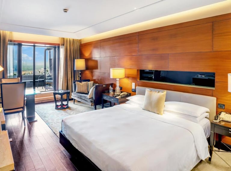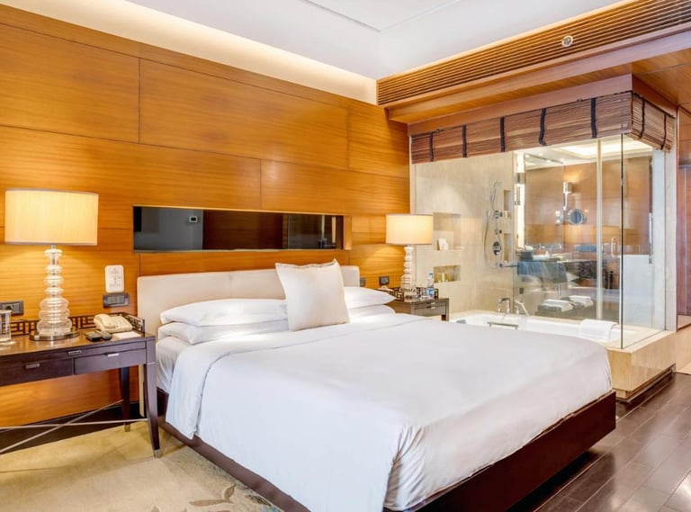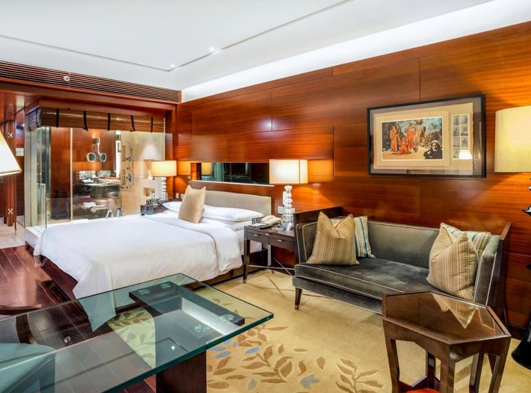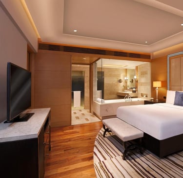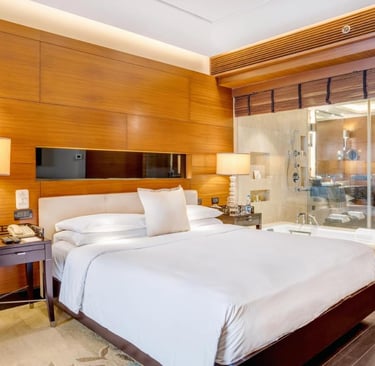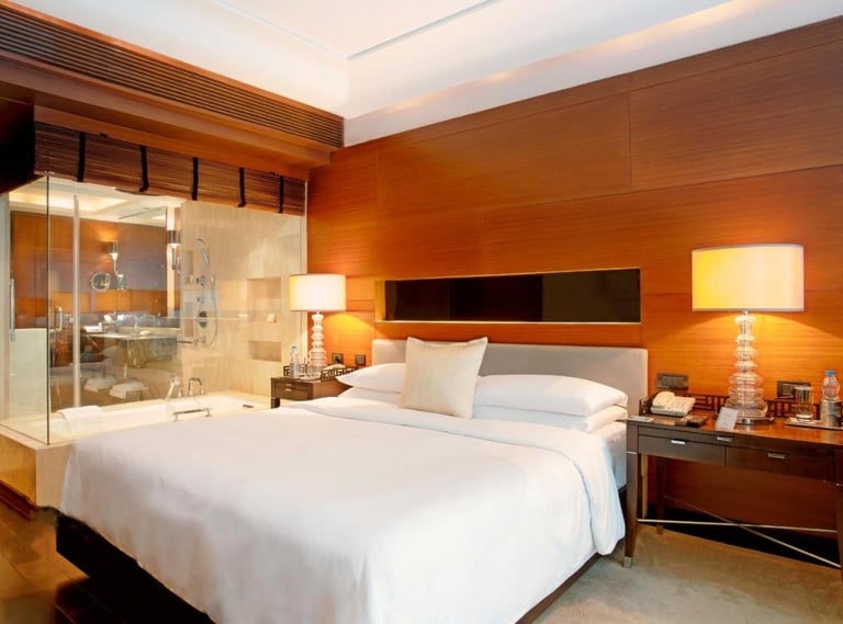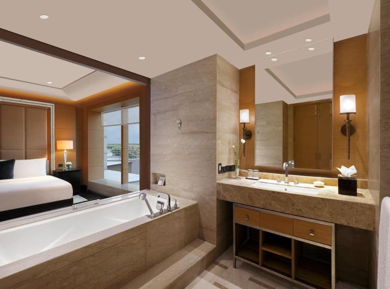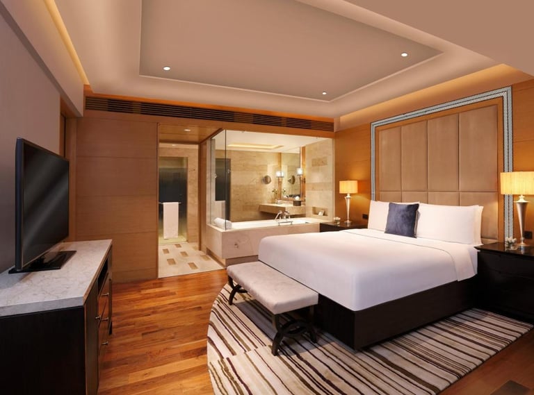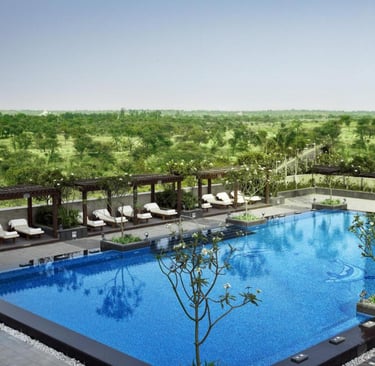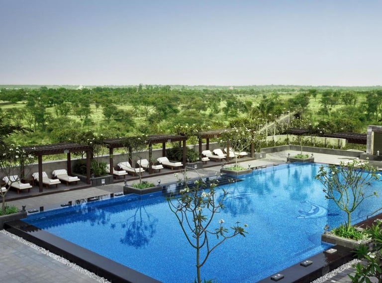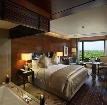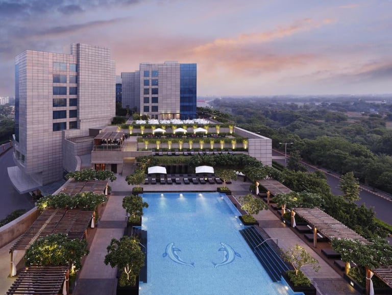 The Leela Ambience also emphasizes wellness, with a luxurious spa, a well-equipped fitness center, and a rooftop swimming pool offering panoramic city views. Its event spaces, including grand ballrooms and intimate meeting rooms, cater to weddings, corporate functions, and private gatherings, supported by meticulous service. Overall, The Leela Ambience Gurugram delivers an exceptional experience with its luxurious ambiance, top-notch amenities, and warm Indian hospitality, making it a standout destination for travelers seeking comfort and sophistication.