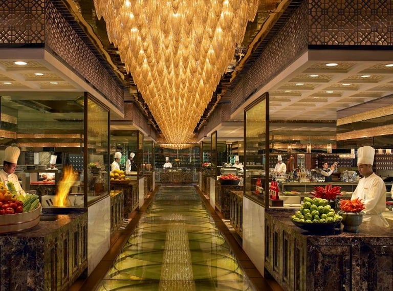 The hotel features spacious, well-appointed rooms and suites with plush furnishings, expansive views, and modern technology. For dining, it boasts a range of high-end restaurants that offer diverse cuisines, from authentic Indian dishes at Diya to global fare at Spectra—a multi-cuisine restaurant known for its lavish buffet. Zanotta, the Italian fine dining restaurant, and the trendy Rubicon Bar & Cigar Lounge add to the vibrant culinary offerings.