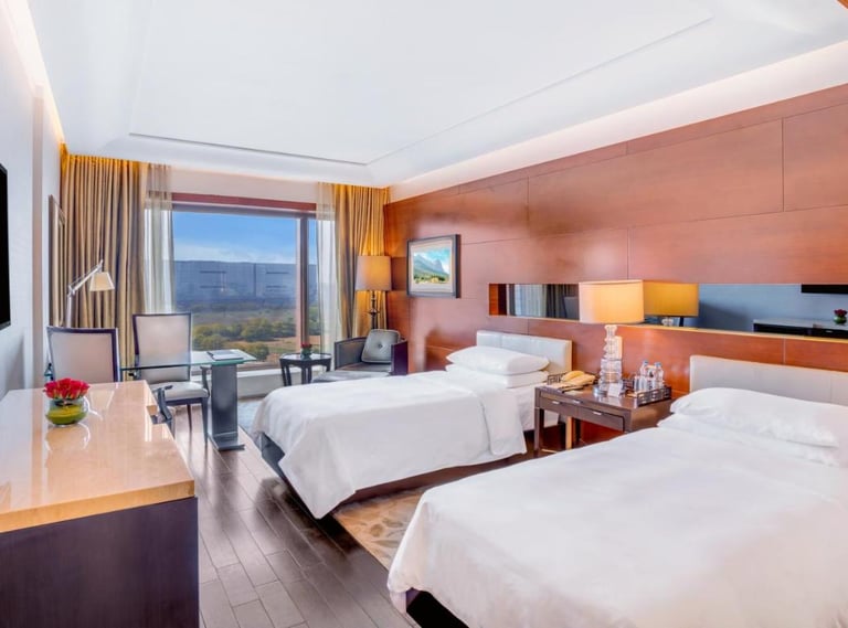 The Leela Ambience Gurugram Hotel & Residences is a luxurious retreat that combines opulence with modern amenities in the heart of Gurugram. This five-star property, located near the bustling Ambience Mall, offers an elegant blend of contemporary design and traditional Indian charm. Its strategic location provides easy access to key commercial hubs, making it a popular choice for both business and leisure travelers.
