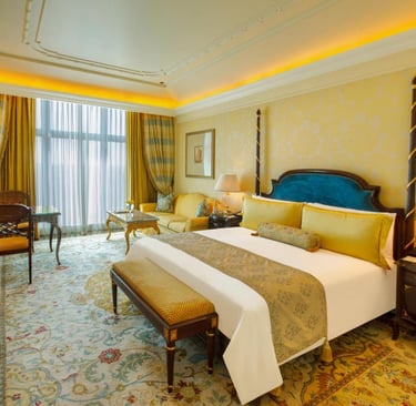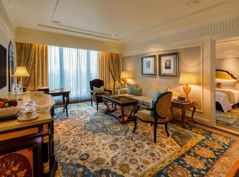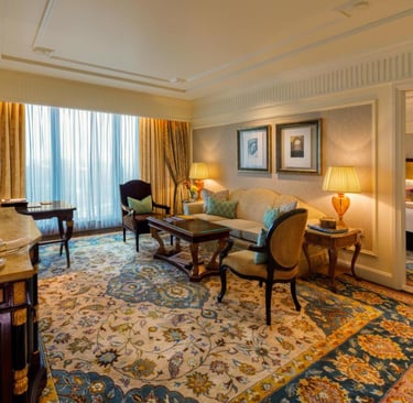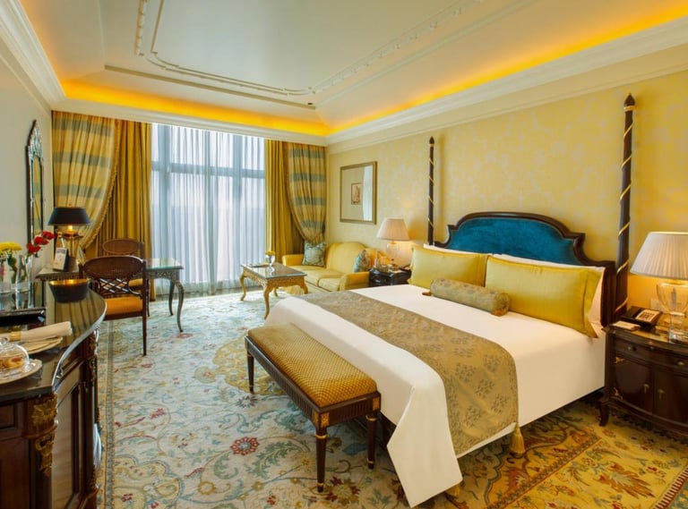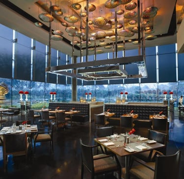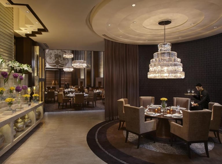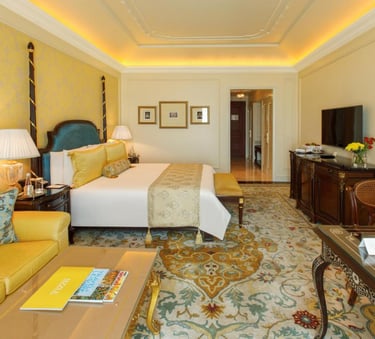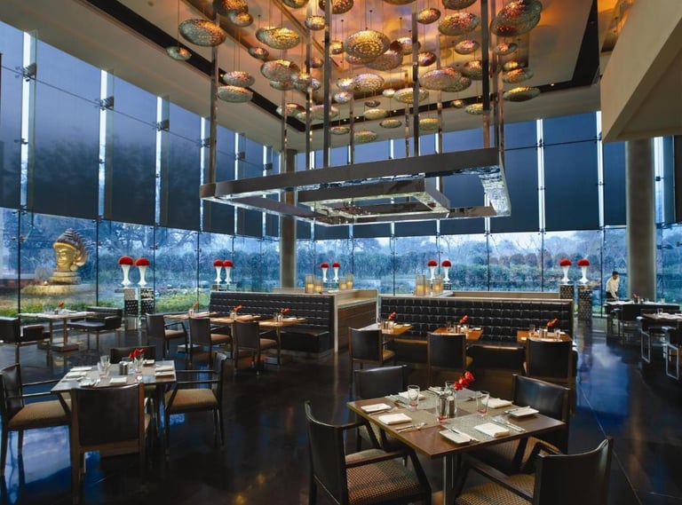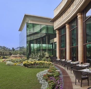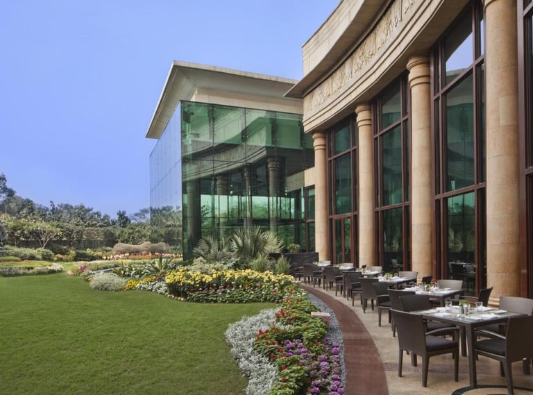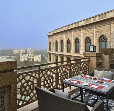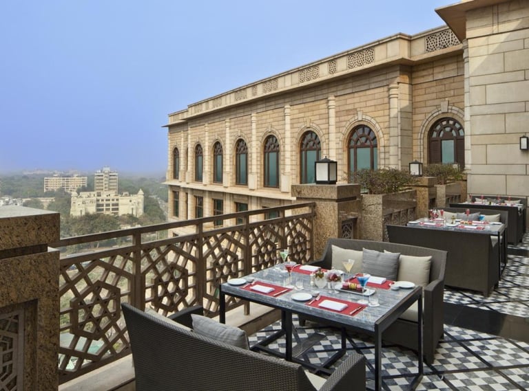 Designed with intricate Mughal and Lutyens architectural influences, the hotel features spacious rooms and suites with lavish decor, handpicked artworks, and the finest furnishings. The luxurious suites offer expansive views of the city's skyline, plush bedding, marble bathrooms with deep soaking tubs, and cutting-edge technology to ensure comfort and convenience.