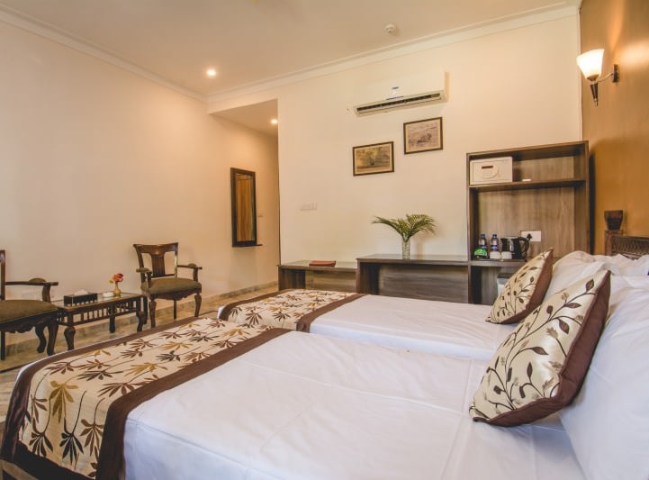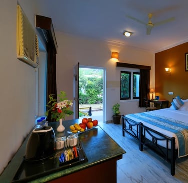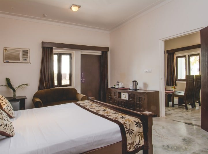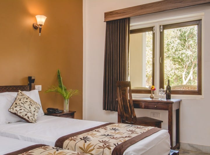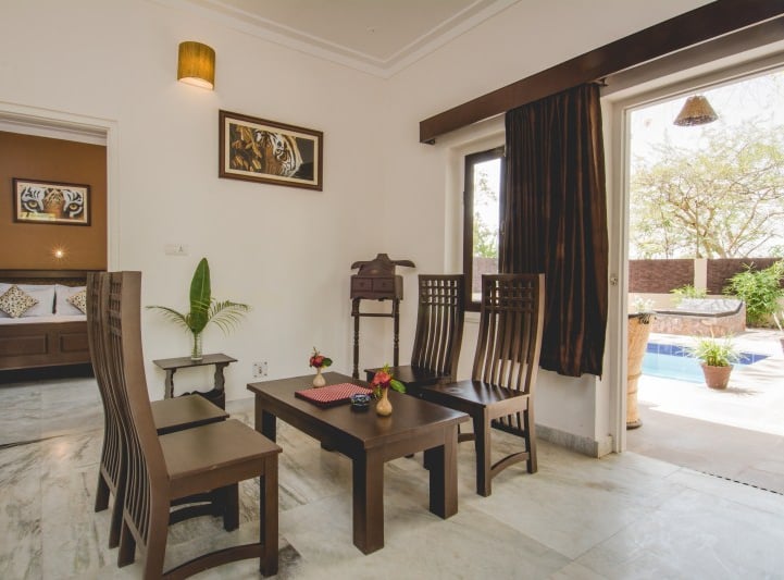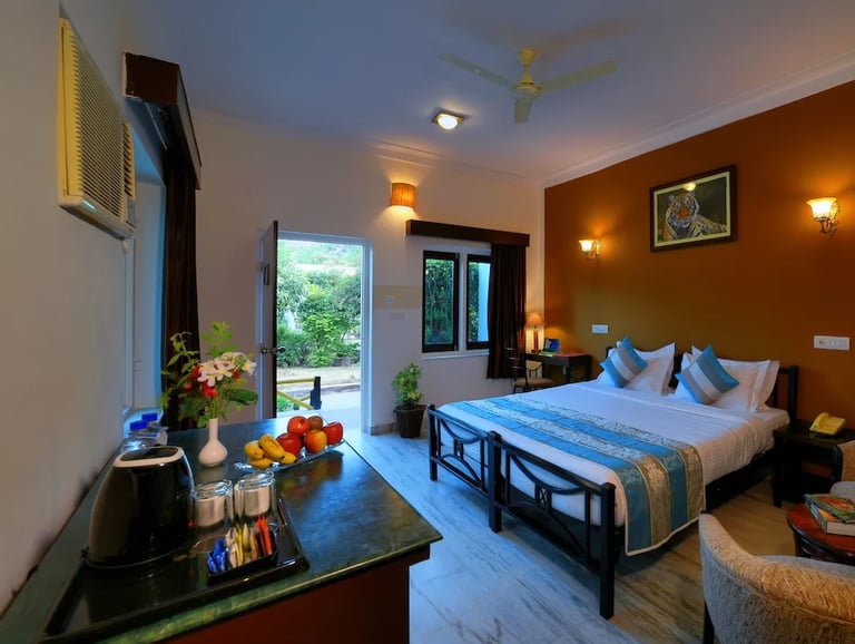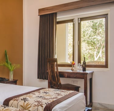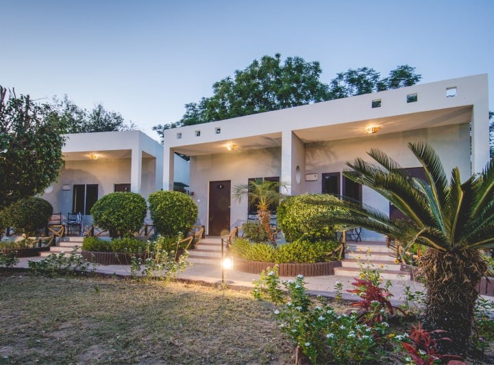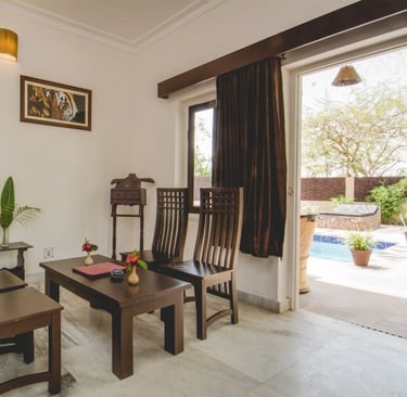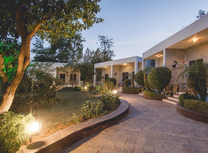 Treehouse The Pugmark, Ranthambore is a luxurious wildlife resort nestled near the Ranthambore National Park. Surrounded by lush greenery and picturesque landscapes, the resort offers a serene blend of nature and modern comfort. Guests can enjoy well-appointed cottages, an inviting pool, and a multi-cuisine restaurant serving delicious meals. Its proximity to the park makes it an ideal base for thrilling jungle safaris and wildlife exploration. Perfect for relaxation and adventure, this eco-friendly retreat ensures a memorable stay amidst nature.
