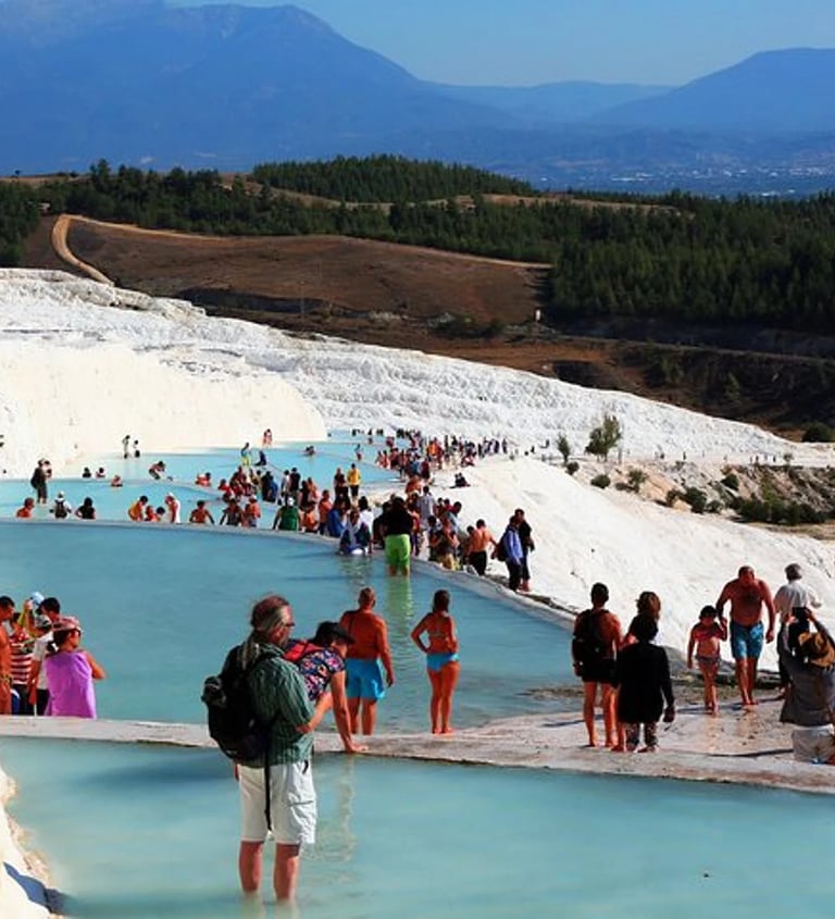Pamukkale: Known for its white travertine terraces and thermal waters. The nearby ancient city of Hierapolis is also worth visiting.