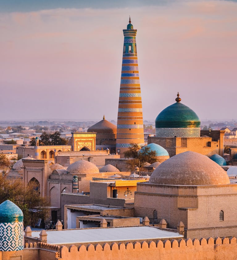 Itchan Kala: A well-preserved old town surrounded by ancient walls, with many historic buildings and mosques.