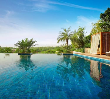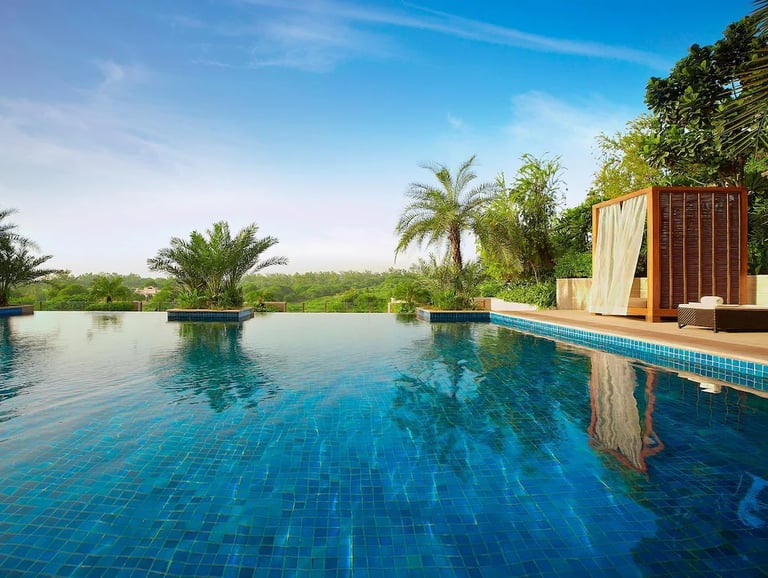 Spa & Wellness Facilities: The hotel is home to the award-winning Jiva Grande Spa, which provides traditional Indian wellness therapies alongside modern treatments. It has a yoga studio, fitness center, and outdoor swimming pool, promoting relaxation and rejuvenation.