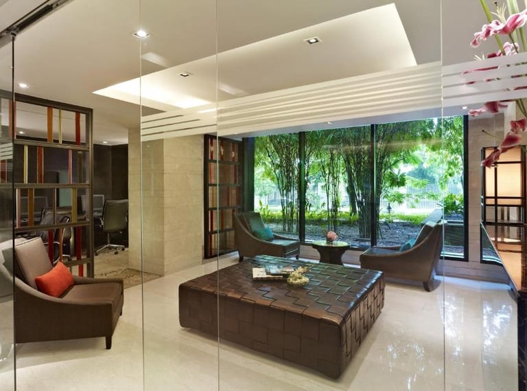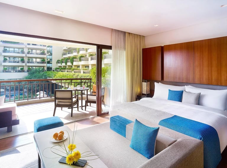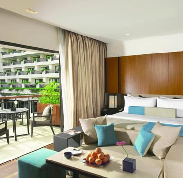 Elegant Rooms & Suites: Each room is thoughtfully designed with modern amenities, tasteful décor, and large windows, offering panoramic views of the natural surroundings. The suites are spacious, featuring luxurious bedding, state-of-the-art entertainment systems, and plush furnishings, creating a relaxing retreat.