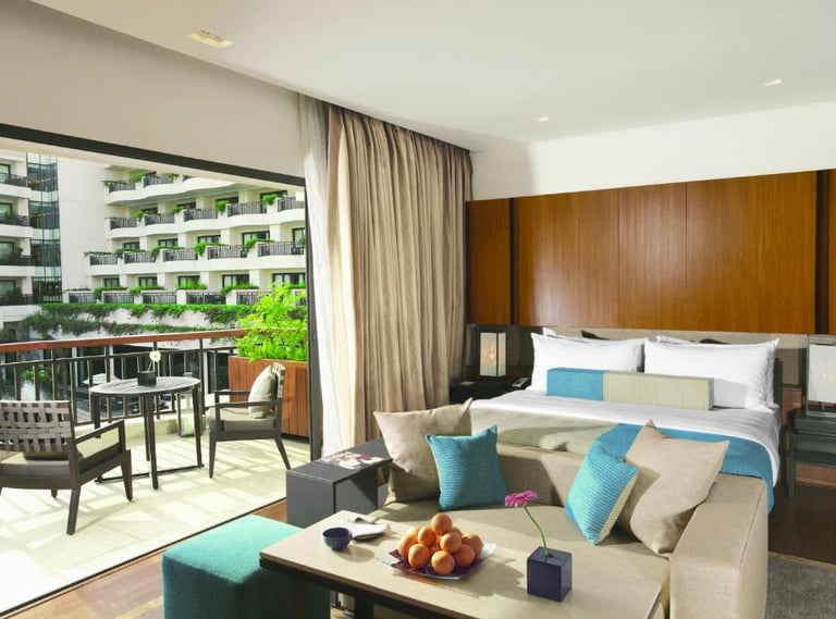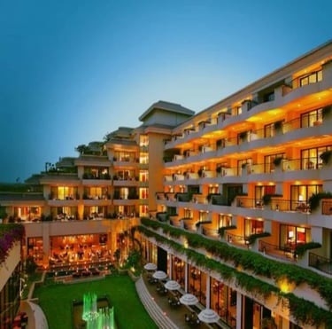 Vivanta Hotel in Surajkund, located in the green belt of South Delhi near the serene Surajkund Lake, offers a luxurious escape with a fusion of contemporary design and classic Indian charm. Known for its eco-friendly architecture and expansive views of the Aravalli hills, Vivanta Surajkund has established itself as a top choice for leisure and business travelers alike.