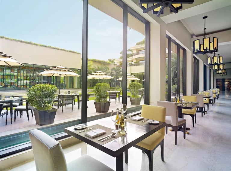 Dining Experience: The dining options are diverse and exceptional, including multi-cuisine restaurants that serve Indian, Mediterranean, and Asian delicacies. Oasis, the hotel’s all-day diner, offers a vibrant culinary experience, while Paranda focuses on authentic North Indian cuisine with bold flavors and traditional spices.