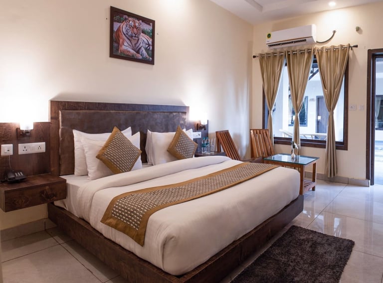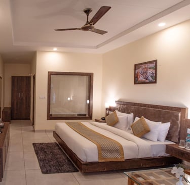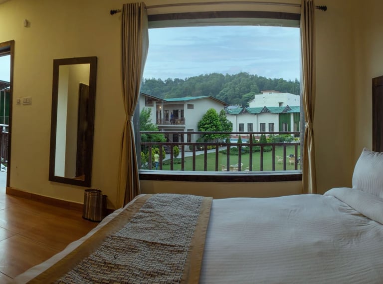 Nestled in the lush landscapes of Jim Corbett, VOW Resorts & Spa offers an immersive escape into nature’s paradise with a touch of unmatched luxury. Each room and suite is designed to provide panoramic views of the mountains and jungle, blending modern comforts with an authentic, natural aesthetic. Enjoy personalized service, gourmet dining, and unique experiences like jungle safaris, bird-watching, and nature trails, which bring you closer to the wilderness of Corbett.